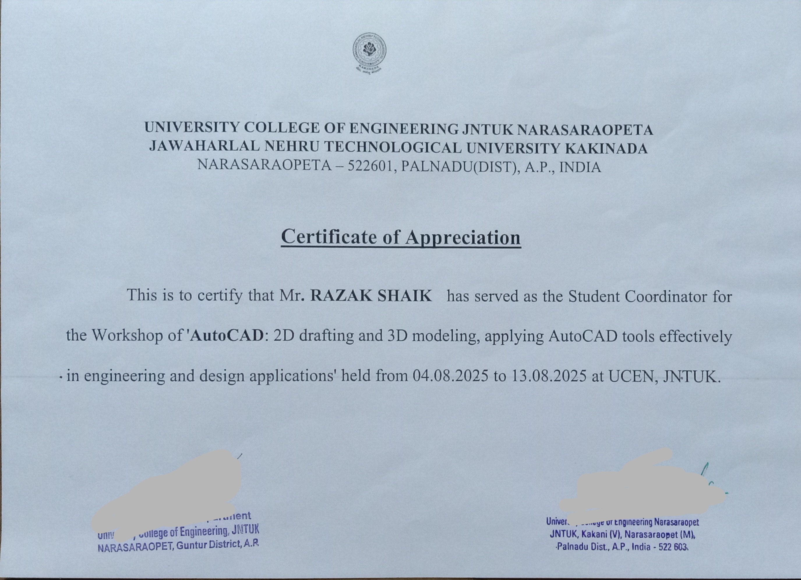 Contributed as Tutor in Autocad Workshop