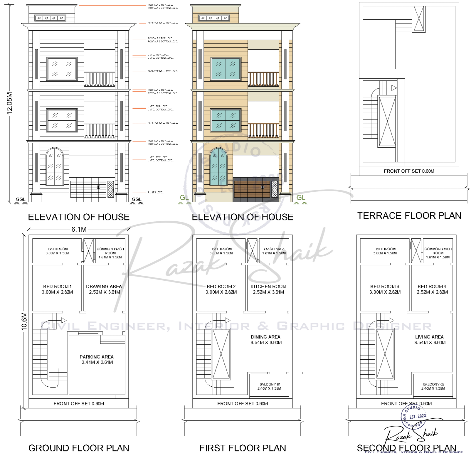 3D modeling and Rendering of a residential compact house exterior using 3DS Max and Floor plans using Autocad.
