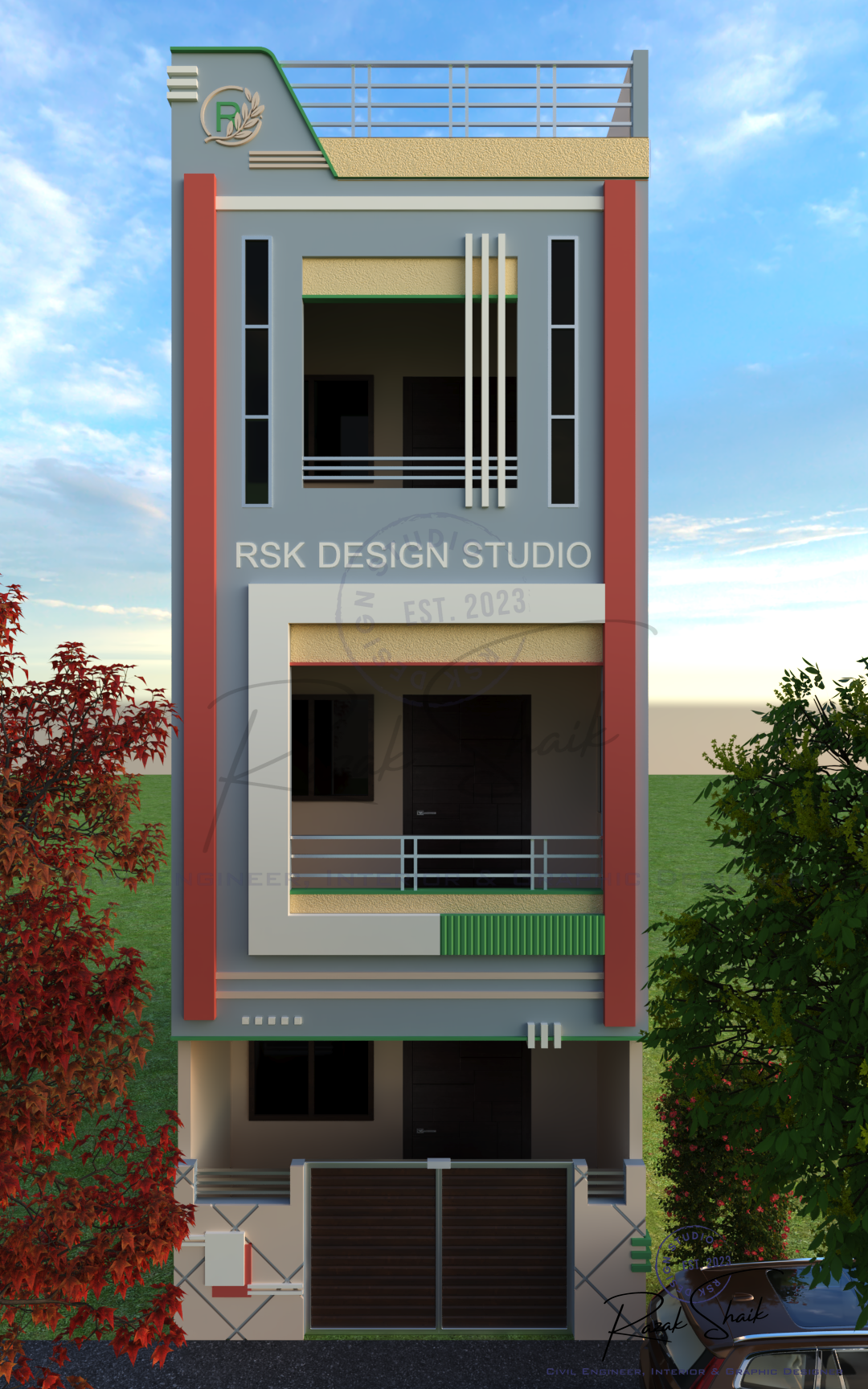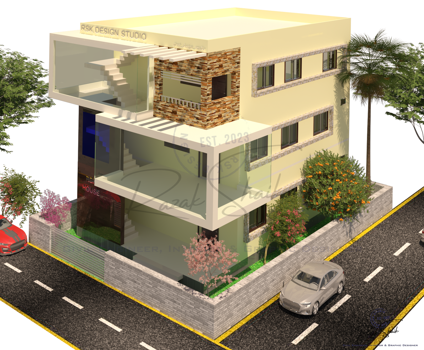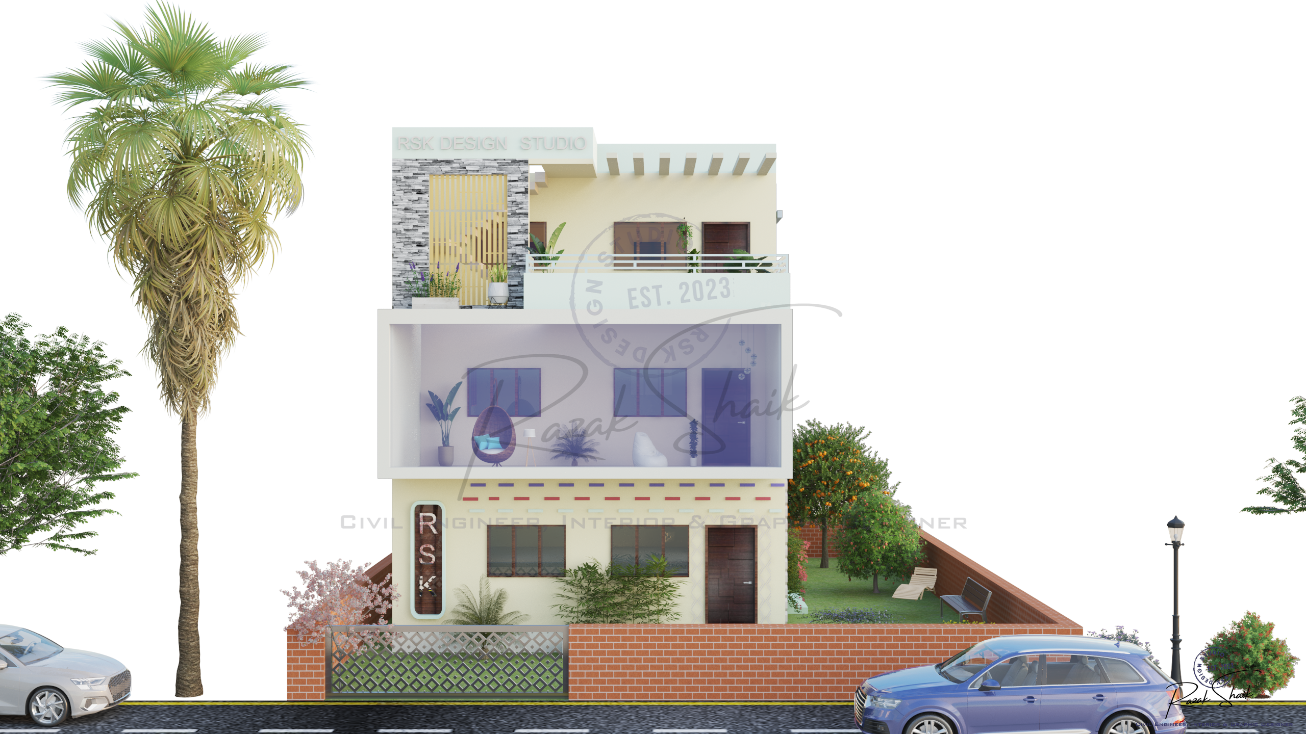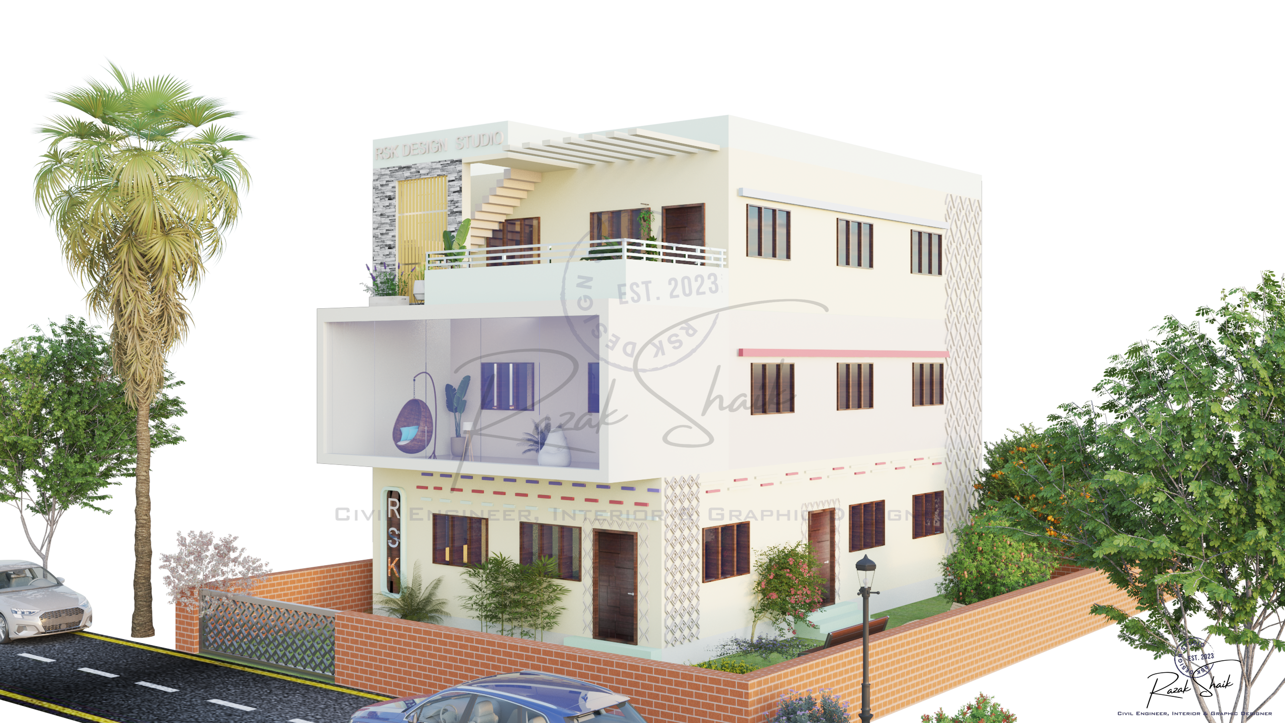 RSK Design Studio is the identity I created at the start of my journey in 3D modeling, graphic design and visual development. This Instagram page showcases the results of my work as I explore how ideas can be transformed into clear and refined visuals. It began as a student’s attempt to practice design, but it has grown into a space where I present polished outcomes that reflect my evolving skills. The page is not restricted to civil engineering. It captures the wider range of creative interests that shape how I think: architectural forms, spatial concepts, graphic compositions and digital models. Each post represents a completed idea, whether it comes from technical curiosity or pure creative exploration.