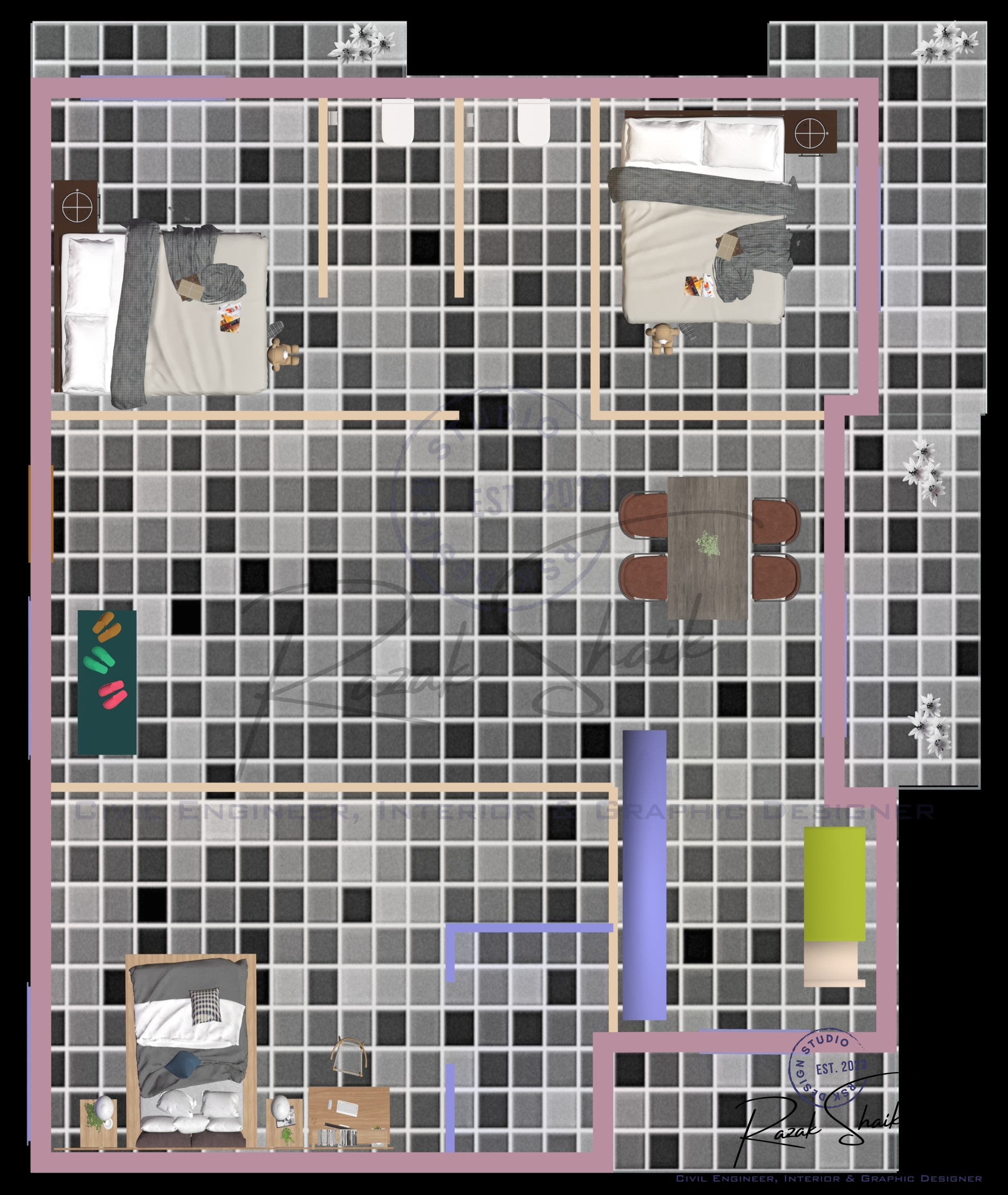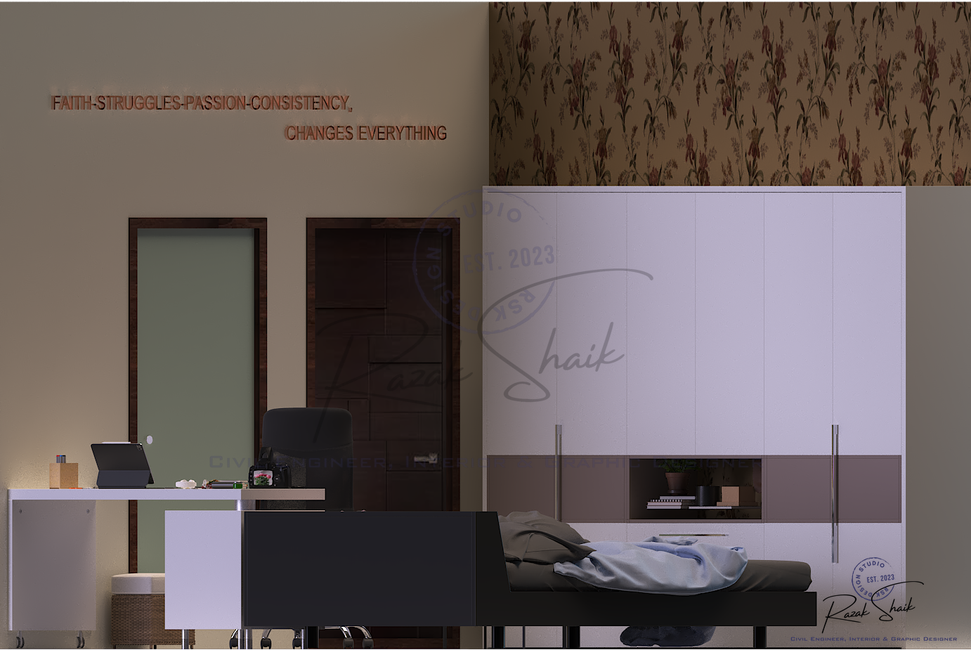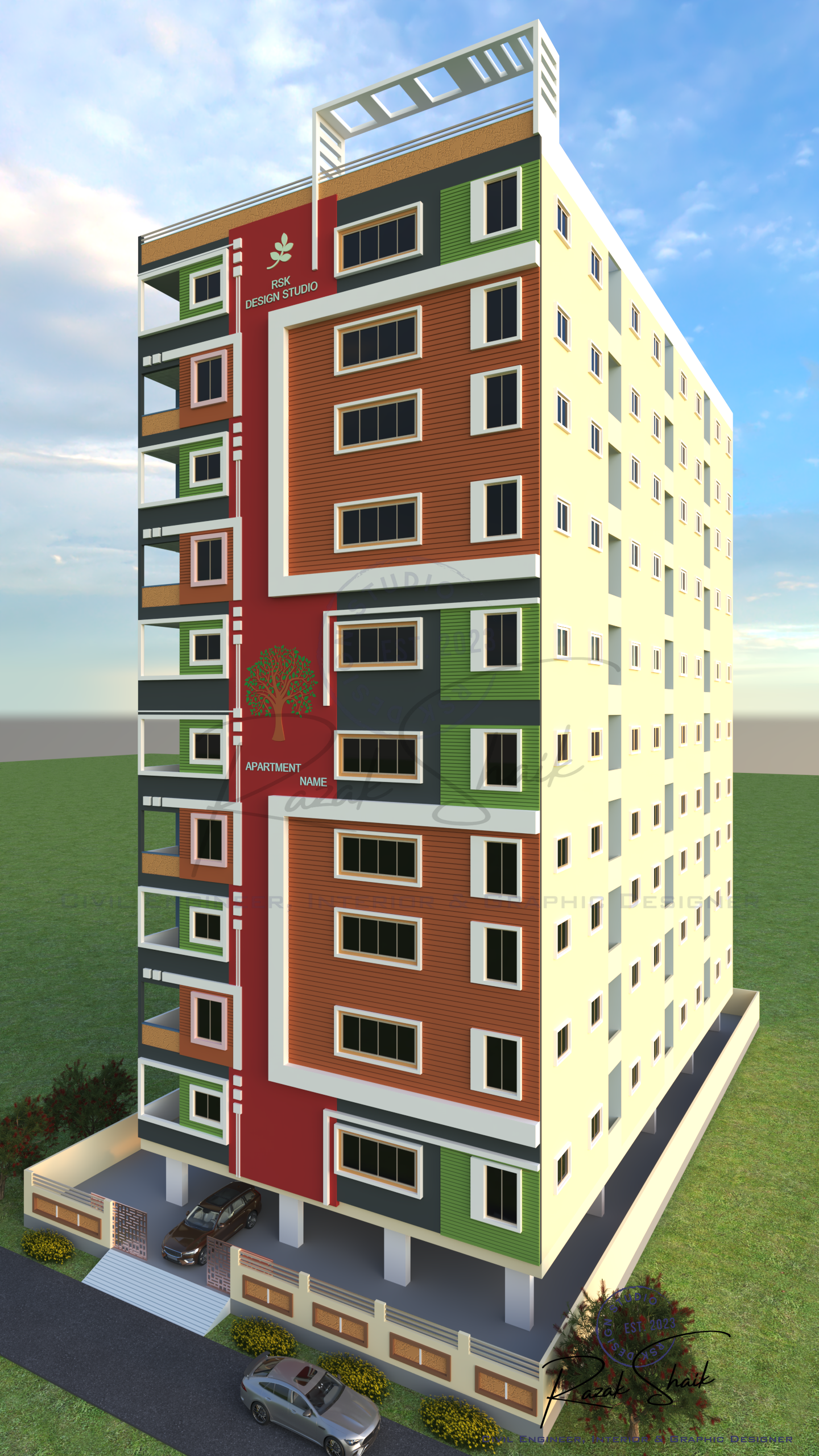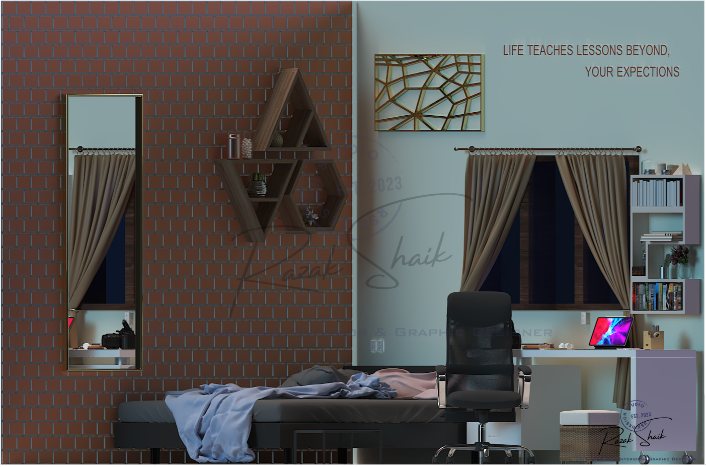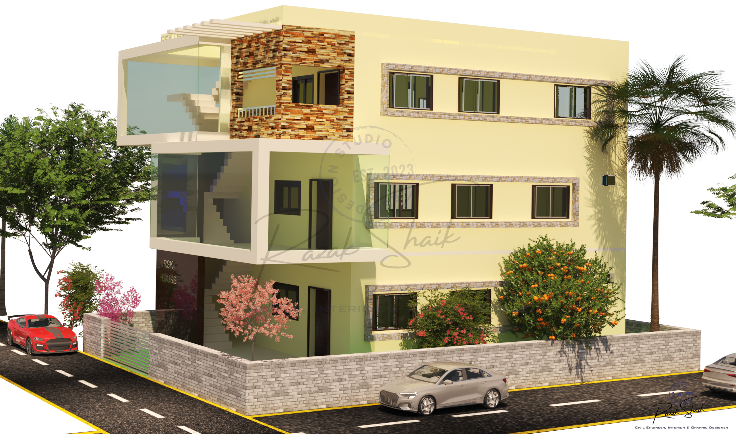 RSK Design Studio is the identity I created at the start of my journey in 3D modeling, graphic design and visual development. This Instagram page showcases the results of my work as I explore how ideas can be transformed into clear and refined visuals. It began as a student’s attempt to practice design, but it has grown into a space where I present polished outcomes that reflect my evolving skills. The page is not restricted to civil engineering. It captures the wider range of creative interests that shape how I think: architectural forms, spatial concepts, graphic compositions and digital models. Each post represents a completed idea, whether it comes from technical curiosity or pure creative exploration.