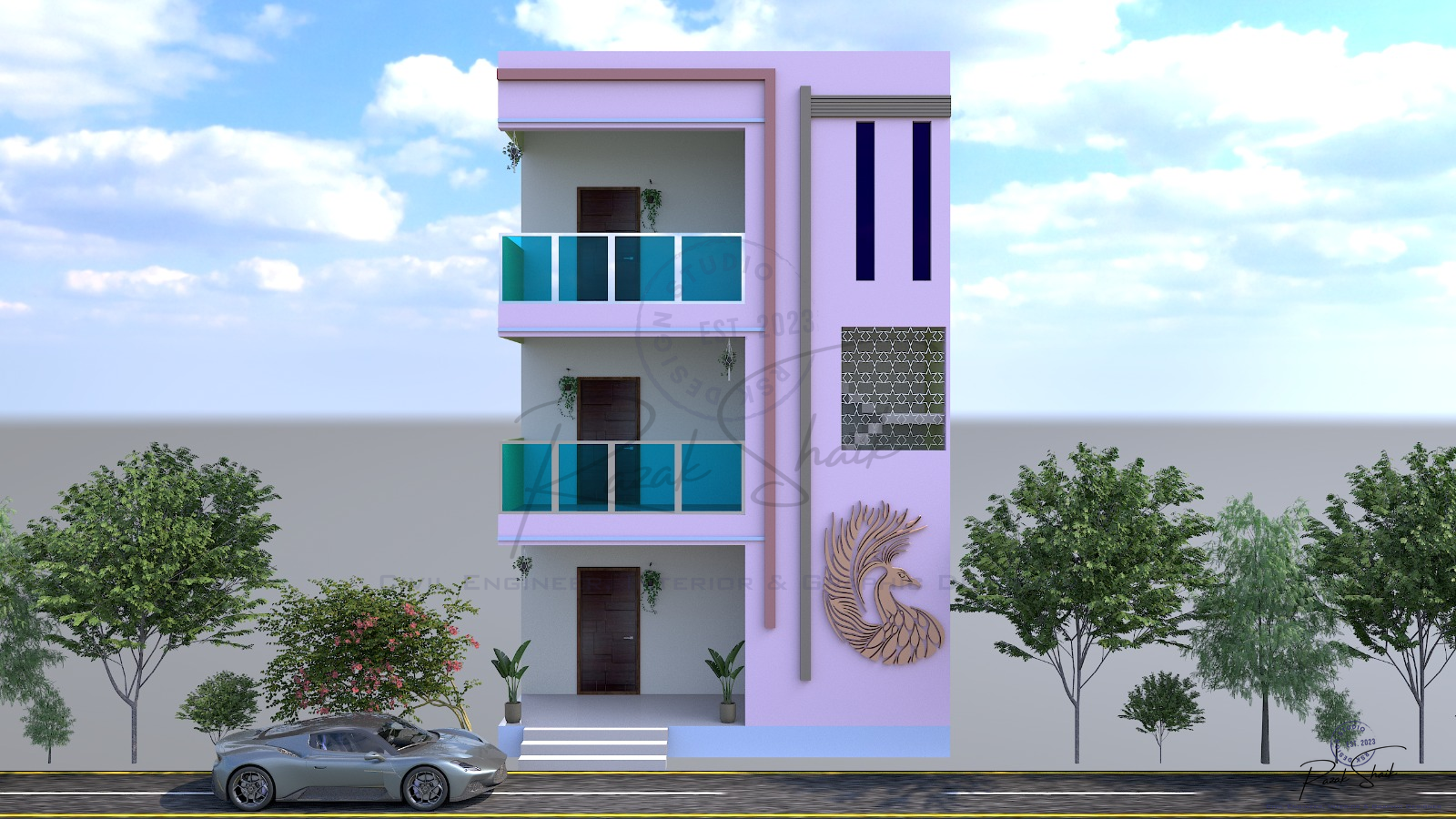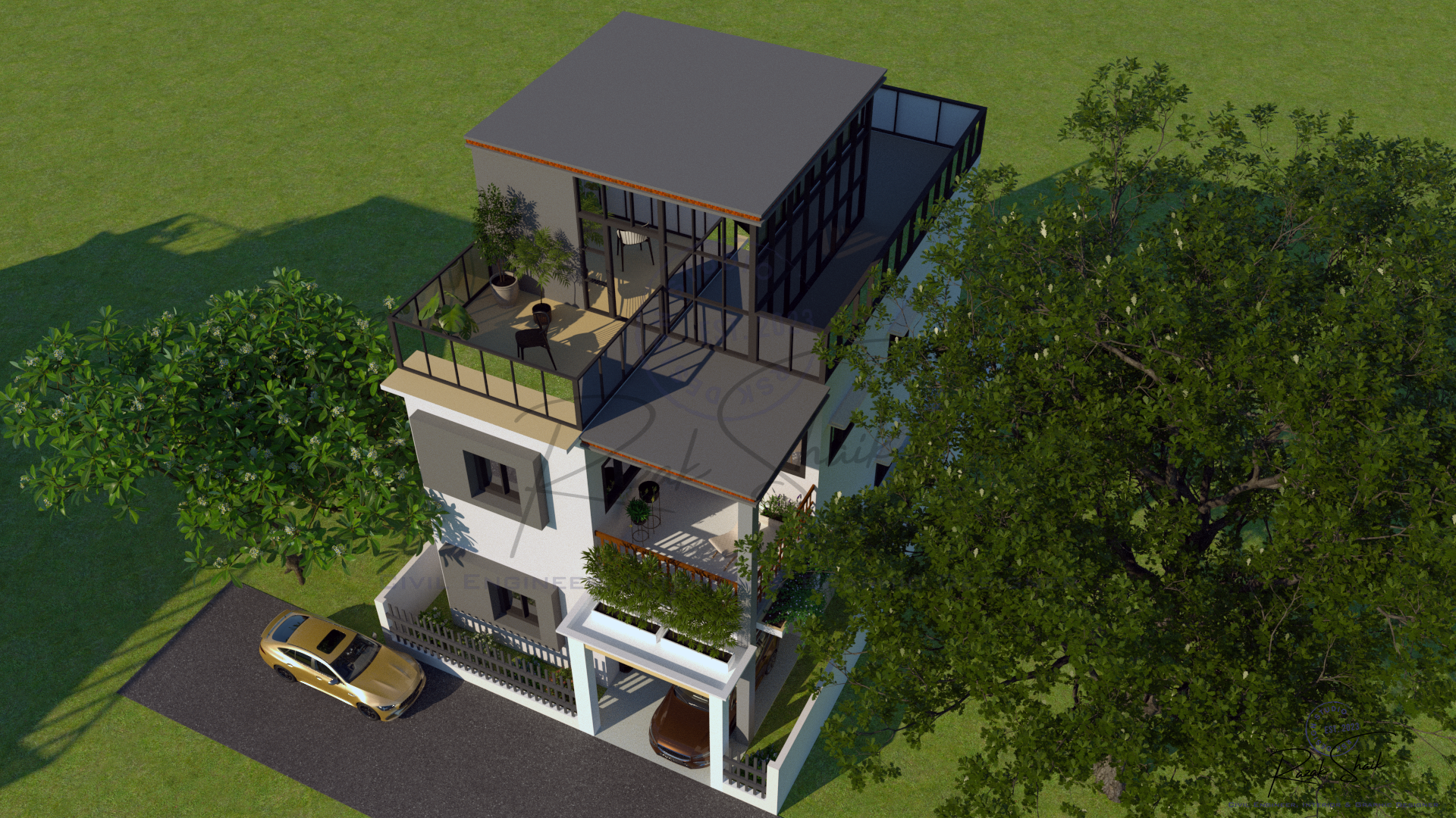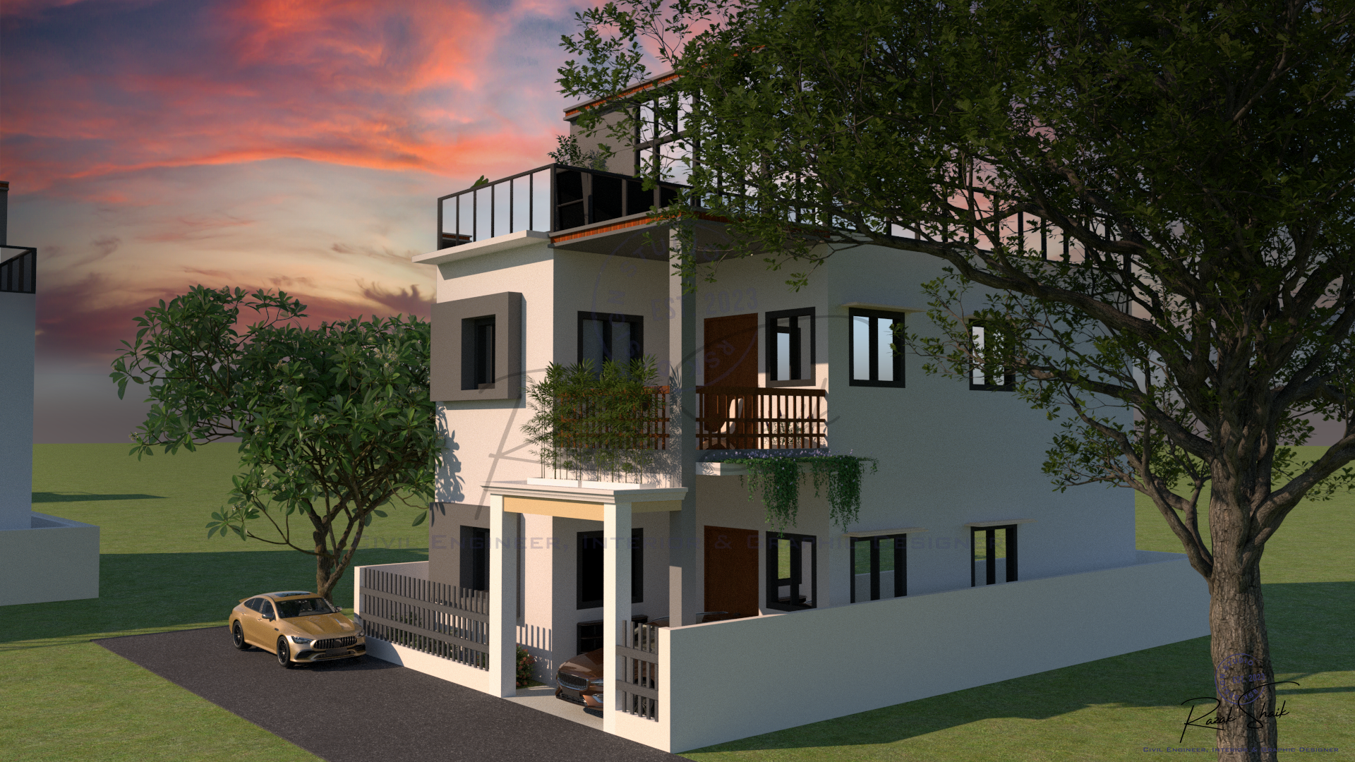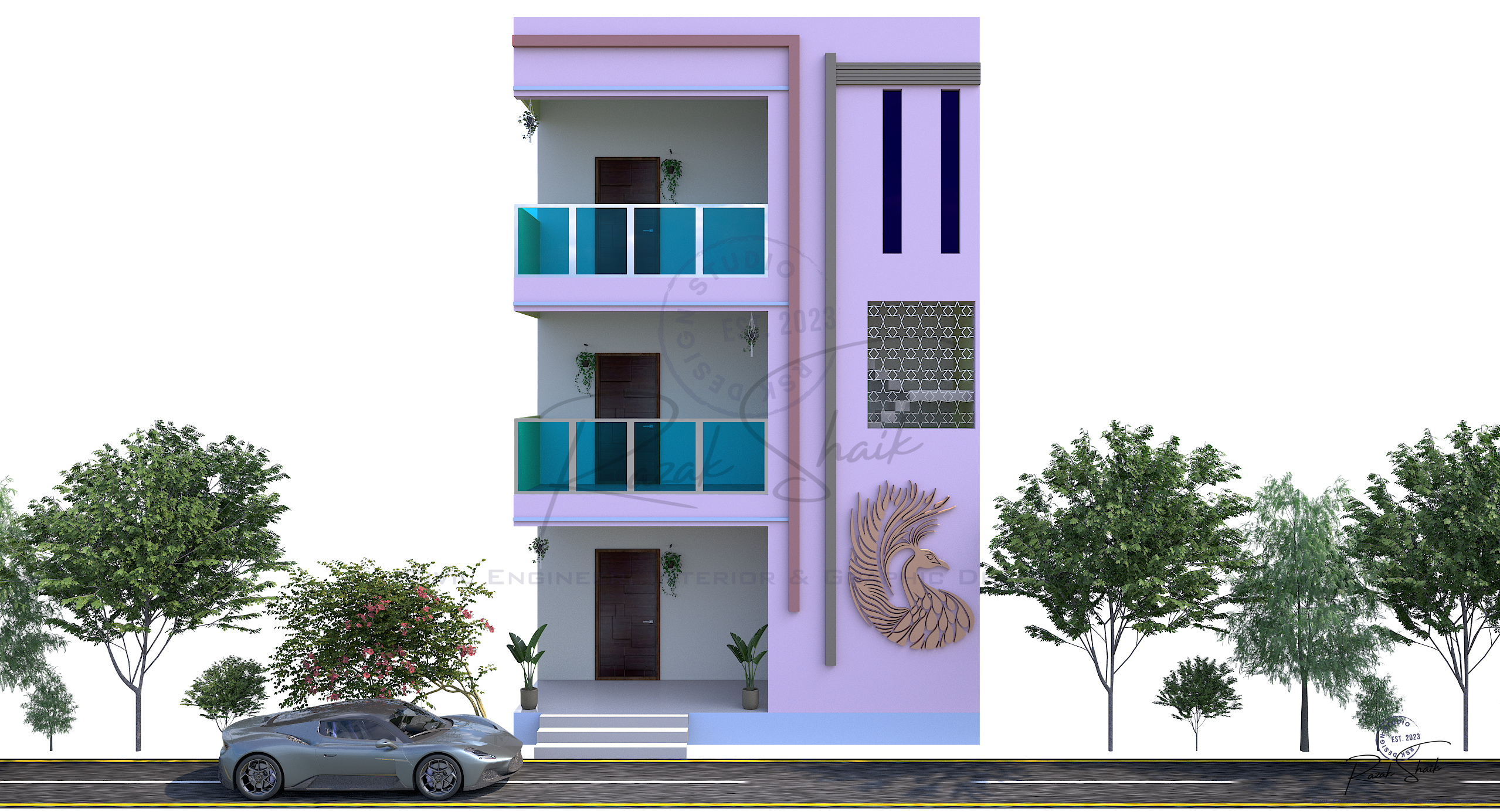 3D modeling and aesthetic color grading of a residential exterior using 3DS Max, Vray and Photoshop.