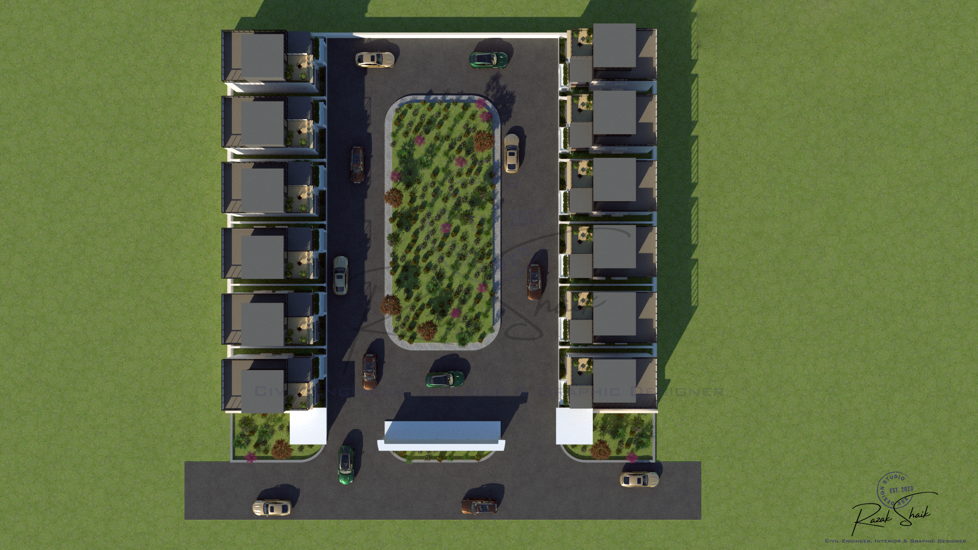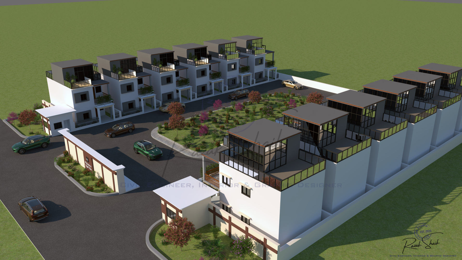 Designed and rendered a 12-villa residential community with a focus on site planning, spatial efficiency, and visual consistency.