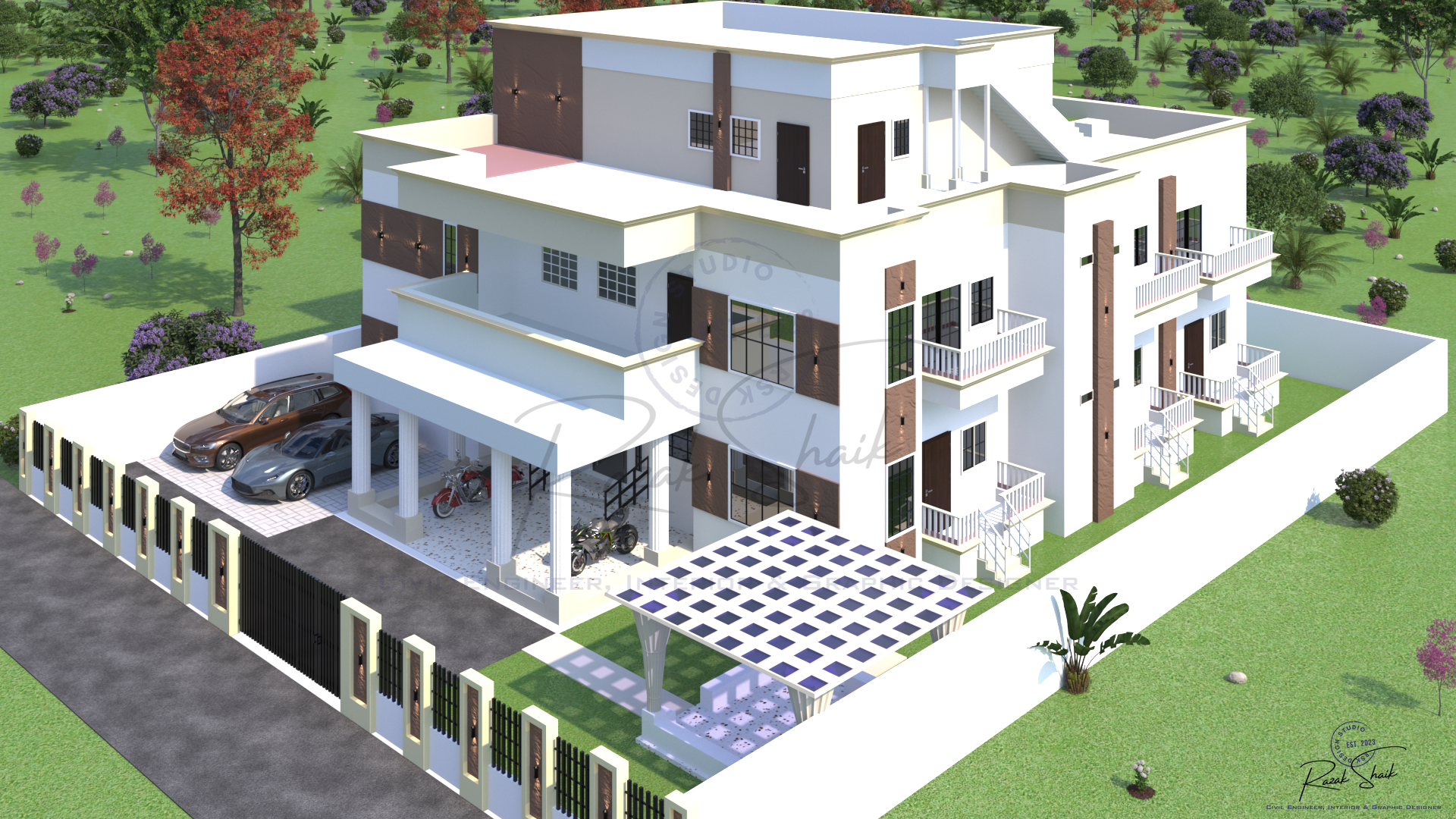3D modeling and Rendering of a residential villa exterior using SketchUp